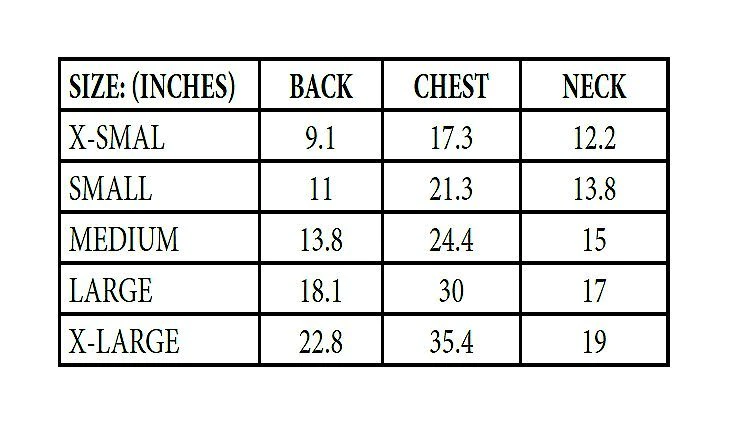 | X-Small | 9.1 inches | 17.3 inches | 12.2 inches |