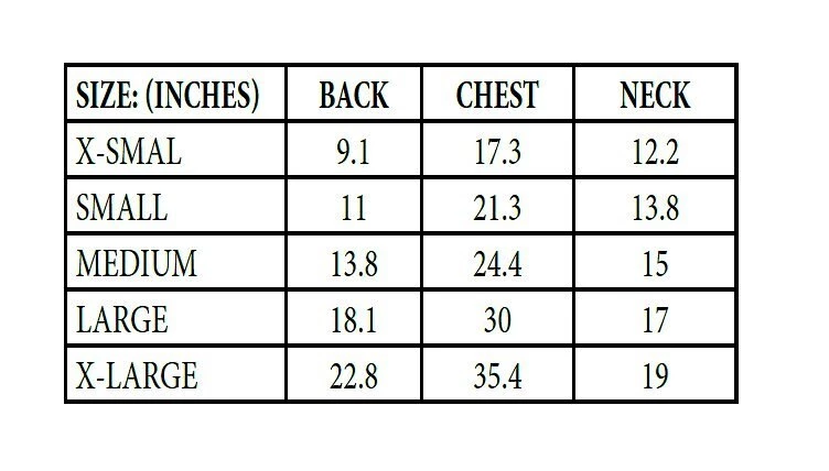 | Size | Length | Chest | Neck |