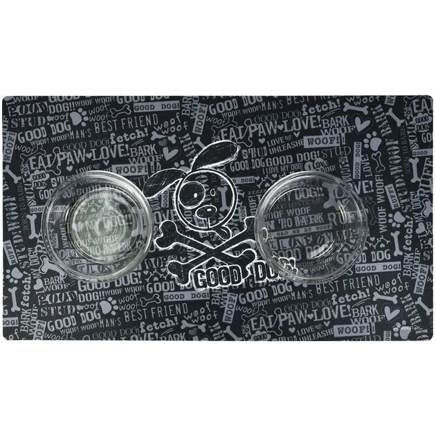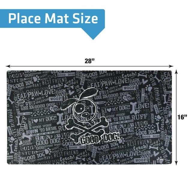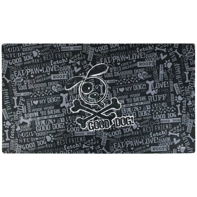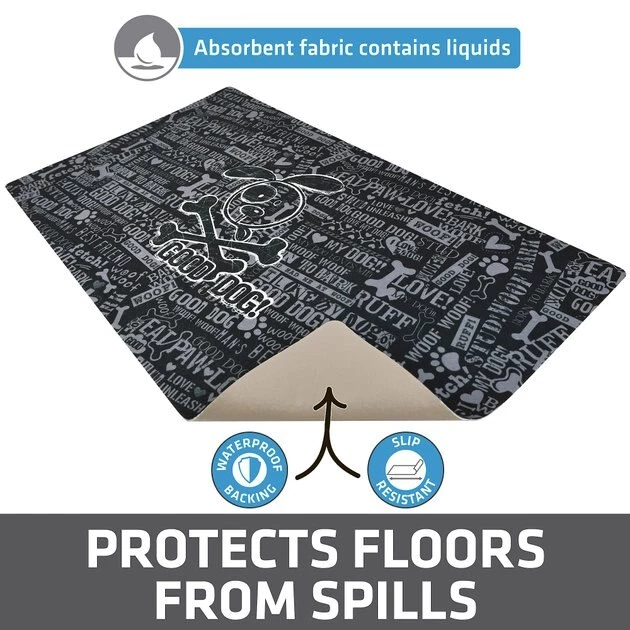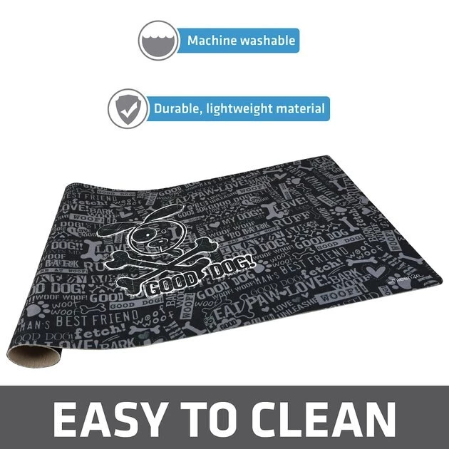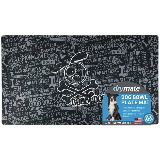 Help keep your dude from making a mess with his food using the Drymate Black Good Dog Cross Bones Dog Placemat. This large dog placemat absorbs liquids quickly and features a waterproof bottom to help keep accidental messes to a minimum. It’s machine-washable for easy cleaning and comes complete with a non-slip backing to keep it in place. When you use this dog placemat, you won’t have to worry about food on your floors that could lead to stains or chores.