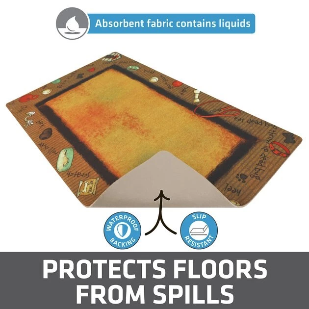 Help put the WOW in bow wow with the Drymate Bow Wow Border Dog Placemat. This dog placemat absorbs liquids quickly and features a waterproof bottom to help keep accidental messes to a minimum. It’s machine-washable for easy cleaning and comes complete with a non-slip backing to keep it in place. When you use this dog placemat, you won’t have to worry about food on your floors that could lead to stains or chores.