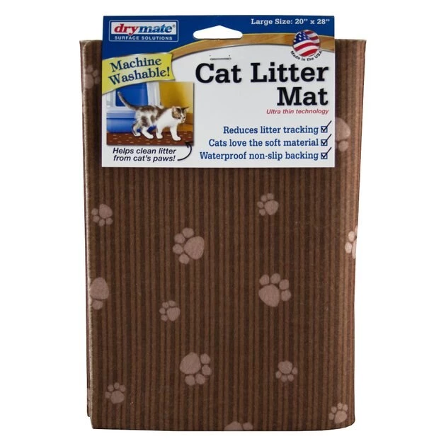 Keep your kitty happy and your floors litter-free with the innovative design of the Drymate Cat Litter Mat. Soft, adorably printed material brushes your kitty’s paws clean after she’s finished her business, and also gives her an additional layer of cushioned comfort as she comes and goes. Effortlessly fit this fetching and functional mat into any space in your home, simply by trimming it down for a custom fit. Quickly handle dusty messes by simply shaking litter that has been collected on the mat’s textured surface back into the box where it belongs, and say goodbye to worrying about your flooring, thanks to a non-slip, waterproof backing. Plus, the entire mat is machine-washable, making for quick and convenient deep cleanings.