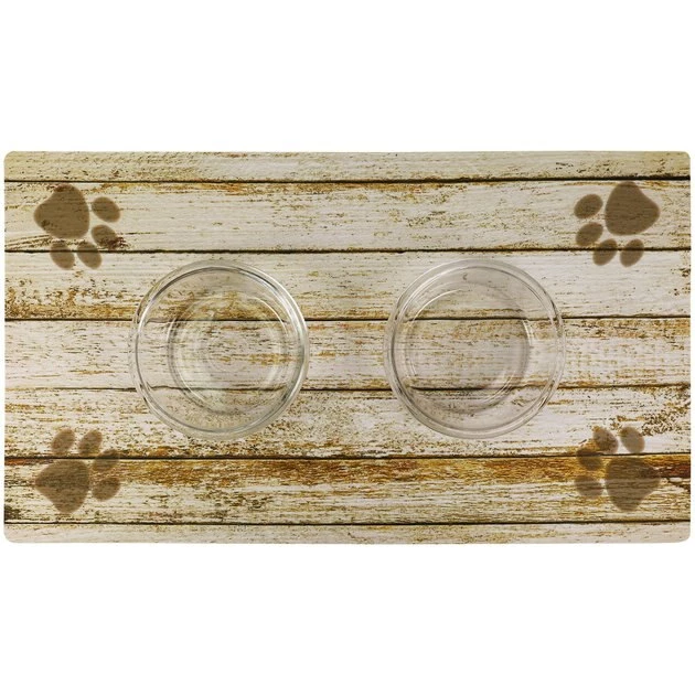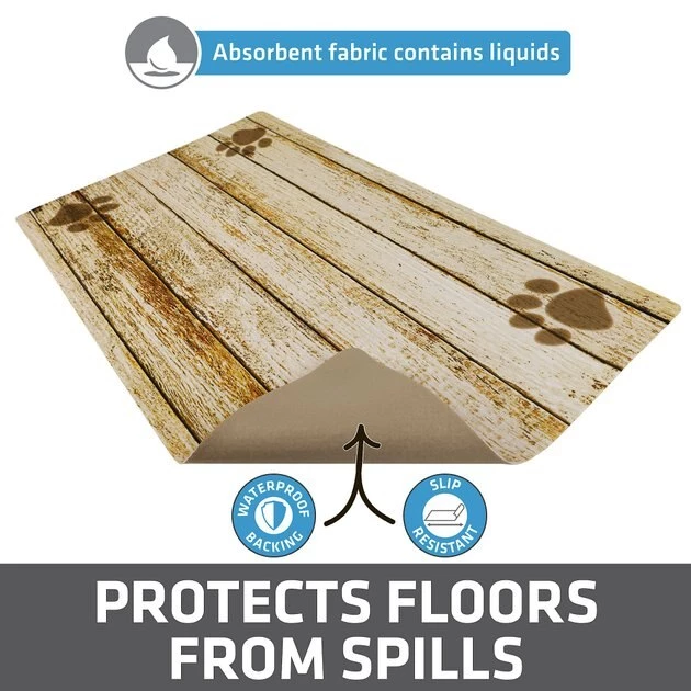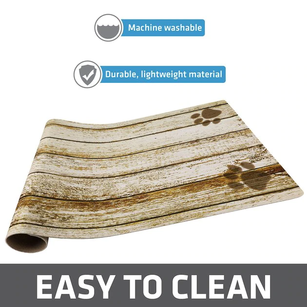 Stop letting spills give you nervous chills with the Drymate Distressed Wood Dog Placemat. This large dog placemat absorbs liquids quickly and features a waterproof bottom to help keep accidental messes to a minimum. It’s machine-washable for easy cleaning and comes complete with a non-slip backing to keep it in place. When you use this dog placemat, you won’t have to worry about food on your floors that could lead to stains or chores.