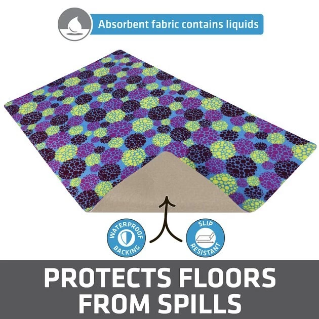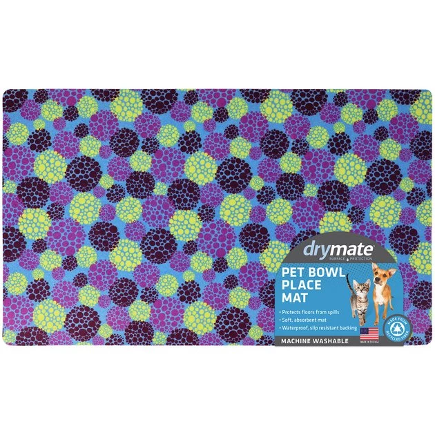Reduce the chance of additional stresses and messes with the Drymate Koya Ito Purple Dog & Cat Placemat. This small pet placemat absorbs liquids quickly and features a waterproof bottom to help keep accidental spills to a minimum. It’s machine-washable for easy cleaning and comes complete with a non-slip backing to keep it in place. When you use this pet placemat, you won’t have to worry about food on your floors that could lead to stains or chores.