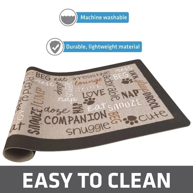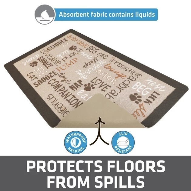 Protect yourself from the stresses of pet messes with the Drymate Linen Dog & Cat Placemat. This small pet placemat absorbs liquids quickly and features a waterproof bottom to help keep accidental spills to a minimum. It’s machine-washable for easy cleaning and comes complete with a non-slip backing to keep it in place. When you use this pet placemat, you won’t have to worry about food on your floors that could lead to stains or chores.