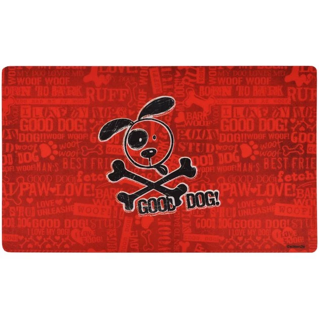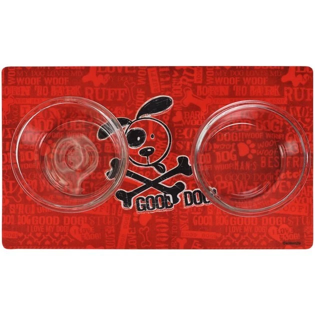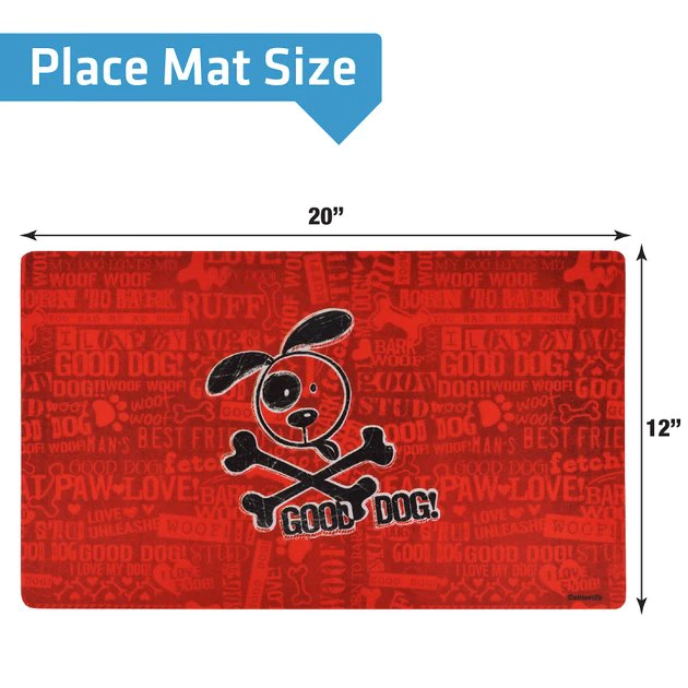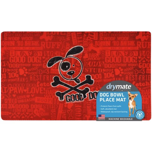 Keep your pupper’s food in his space instead of all over the place with the Drymate Red Good Dog Cross Bones Dog Placemat. This dog placemat absorbs liquids quickly and features a waterproof bottom to help keep accidental messes to a minimum. It’s machine-washable for easy cleaning and comes complete with a non-slip backing to keep it in place. When you use this dog placemat, you won’t have to worry about food on your floors that could lead to stains or chores.