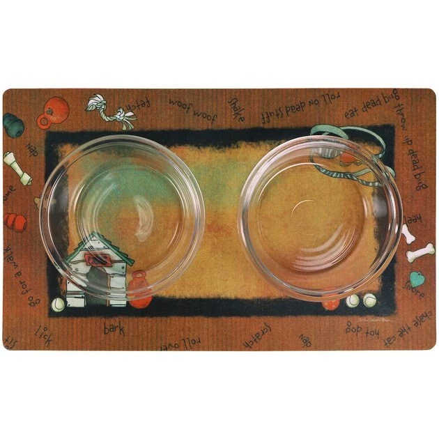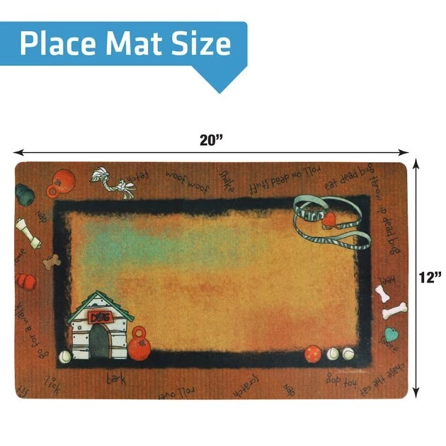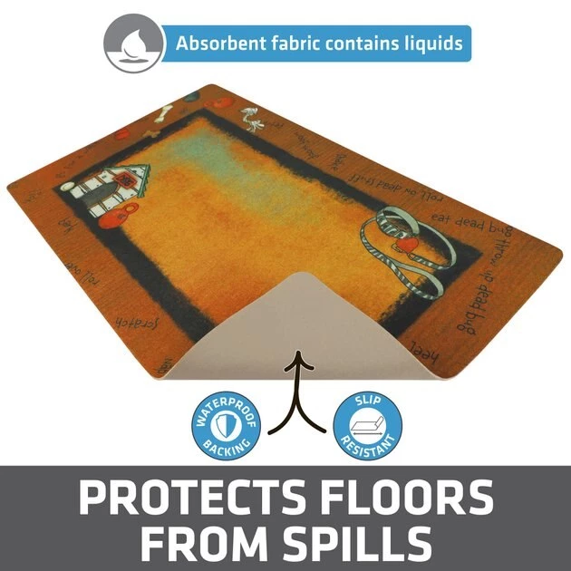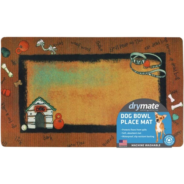 Help keep your dude’s food where it should be with the Drymate Rust Stripe Border White Dog House Dog Placemat. This dog placemat absorbs liquids quickly and features a waterproof bottom to help keep accidental messes to a minimum. It’s machine-washable for easy cleaning and comes complete with a non-slip backing to keep it in place. When you use this dog placemat, you won’t have to worry about food on your floors that could lead to stains or chores.