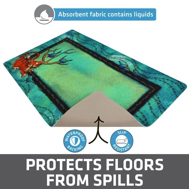 Give your kitty somewhere pretty to eat with the Drymate Cat Bowl Place Mat. This small cat placemat absorbs liquids quickly and features a waterproof bottom to help keep accidental messes to a minimum. It’s machine-washable for easy cleaning and comes complete with a non-slip backing to keep it in place. When you use this cat placemat, you won’t have to worry about food on your floors that could lead to stains or chores.