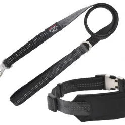 - Features a sporty alloy swivel safety lock leash attachment with stainless steel rings and quick-click buckles for added ease and durability.