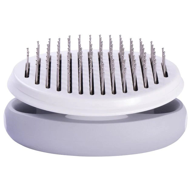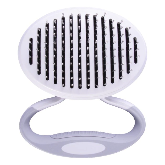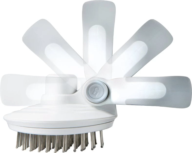Get a new angle on grooming with the Pet Life Gyrater Travel Self-Cleaning Swivel Grooming Dog & Cat Pin Brush. This innovative pin brush features a customizable handle that you can reposition at any angle you need. Simply squeeze the handle release buttons to swivel the brush and release them to lock it into the right position. The brush also has a hair release button that lets you eject collected hair for fast and easy cleaning. Palm and knuckle handle grip options—and a soft contoured inner surface—provide comfort and control during brushing. Perfect for use on dogs and cats of all coat types, this brush is compact enough to go anywhere you need it!