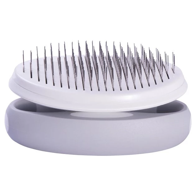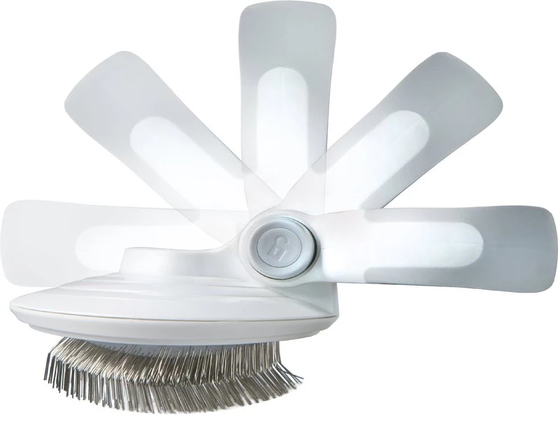 Help your best friend look smooth and sleek with the Pet Life Gyrater Travel Self-Cleaning Swivel Grooming Slicker Dog & Cat Brush. This innovative slicker brush features a customizable handle that you can reposition at any angle you need. Simply squeeze the handle release buttons to swivel the brush and release them to lock it into the right position. The brush also has a hair release button that lets you eject collected hair for swift and easy cleaning. Palm and knuckle handle grip options—and a soft contoured inner surface—provide comfort and control during brushing. Perfect for removing mats and tangles on dogs and cats with medium to long-haired coat types, this brush is compact enough to go anywhere you need it!