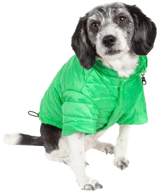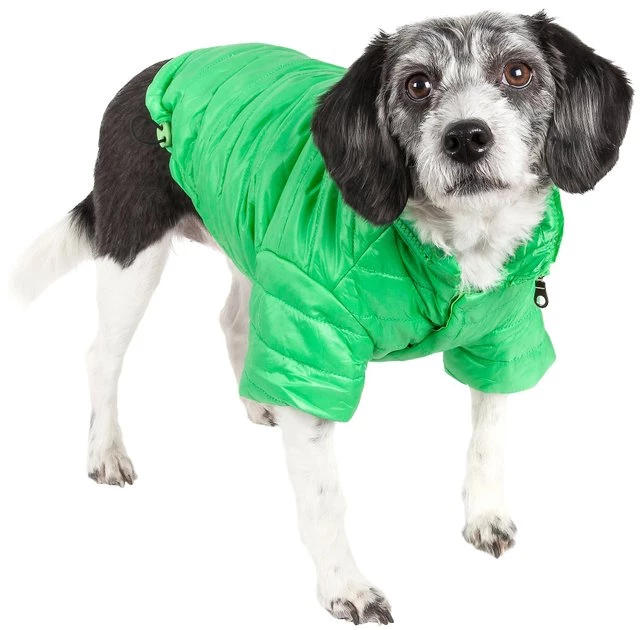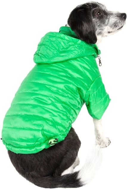 Remember to measure your pet for the paw-fect fit. Pets stay warm and cozy when they slip on the Pet Life Lightweight Sporty Avalanche Dog Coat. This fashionable coat is made just for pups, with high-quality materials that protect them from biting cold winds. It’s windproof and keeps pets extra toasty with special 3M Thinsulate Thermal Heat Retention Technology, which adds a layer of warmth with a thin, insulating shell tucked inside dual-sided polyester fabric. Your tail-wagging pal will be extra comfy in this lightweight coat that slips on and off easily with a fuzzy fastener closure that attaches at the belly. Adjustable straps along the back give the perfect fit, and there’s a hole for leash attachment at the back of the neck. The concealed hood can pop out of the collar when needed. There’s even a storage bag with a handle for easy carrying. The Lightweight Sporty Avalanche Dog Coat comes in tons of sizes and colors to suit any dog’s personality.