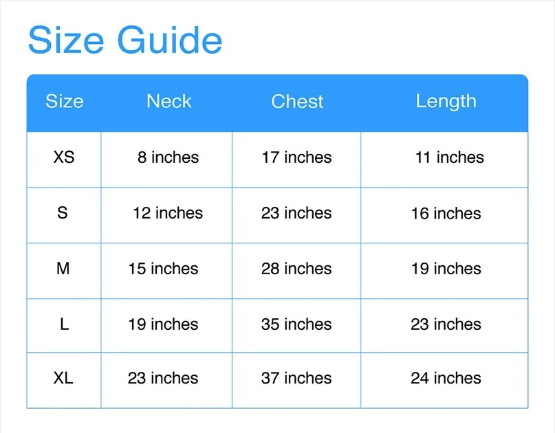 Chest: Most important measurement; measure your dog’s chest around the widest part. Add 2 inches for comfort.