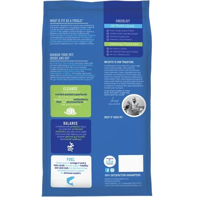 Butterball. Meatloaf. Pet names are endearing, but extra weight is no laughing matter when it comes to your cat’s health. This grain and gluten free weight control recipe is nutritious, delicious and figure-friendly. Crafted with fresh caught, omega-rich Alaskan Pollock and featuring a unique blend of 20 superfoods, this recipe supports the immune system as well as skin and coat health. Watch your cat strut its stuff with confidence!