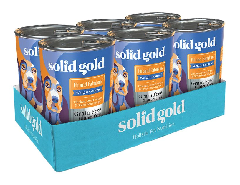 Help keep your pooch at his ideal weight with the Solid Gold Fit & Fabulous Chicken, Sweet Potato & Green Bean Weight Control Recipe Grain-Free Canned Dog Food. Designed specifically for weight control, this low fat, low calorie formula is both nutritious and delicious, and made with chicken, chicken liver, and green beans as the top ingredients. It’s crafted with a unique blend of superfoods like flaxseeds, spinach and fish oil, plus vitamins and minerals, it’s a complete and balanced diet for adult pups that need to stay in shape.