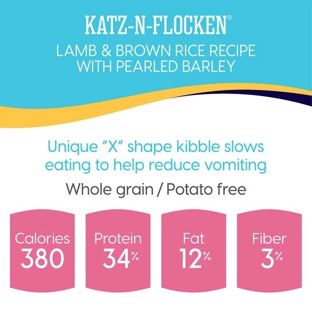 Attract your furry friend to her bowl with Solid Gold Katz-n-Flocken Lamb & Brown Rice Recipe with Pearled Barley Whole Grain Dry Cat Food. It features real lamb as the first ingredient with healthy whole grains like brown rice and pearled barley for a taste your kitty won’t be able to resist. This diet is specially formulated to be easily digestible for those paw-tners with food sensitivities. It is iron rich for muscle health and contains a unique blend of functional superfoods to promote gut health and overall immune support. This food also has star-shaped kibble helps promote slow eating and reduce vomiting. Keep your companion going strong with this potato-free dry food from Solid Gold.