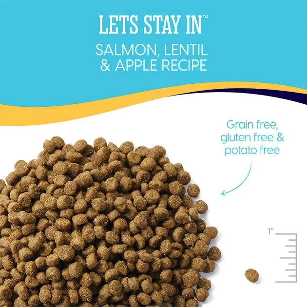 Satisfy your indoor cat’s so-fish-ticated tastes with Let’s Stay In Salmon, Lentil & Apple Indoor Adult Cat Food that’s grain free and for hairball control. She’ll love the fur-esh taste of these specially crafted superfoods and you’ll love how healthy this holistic cat food is for her. Real, lean salmon is the very first ingredient and backed up with fiber packed lentils and delicious apples. With a unique blend of blueberries, pumpkins, salmon oil and more, this adult cat food is designed with your cat in mind. Balanced with prebiotics, omega fats and 90 million probiotics per pound, you’ll know that you’re giving her the very best.