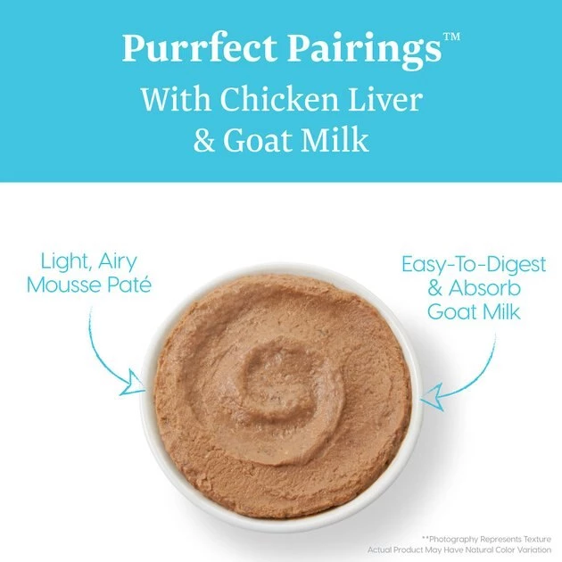 - Holistic formula with high-protein chicken liver in a lip-smacking and filling mousse made with wholesome goat milk.