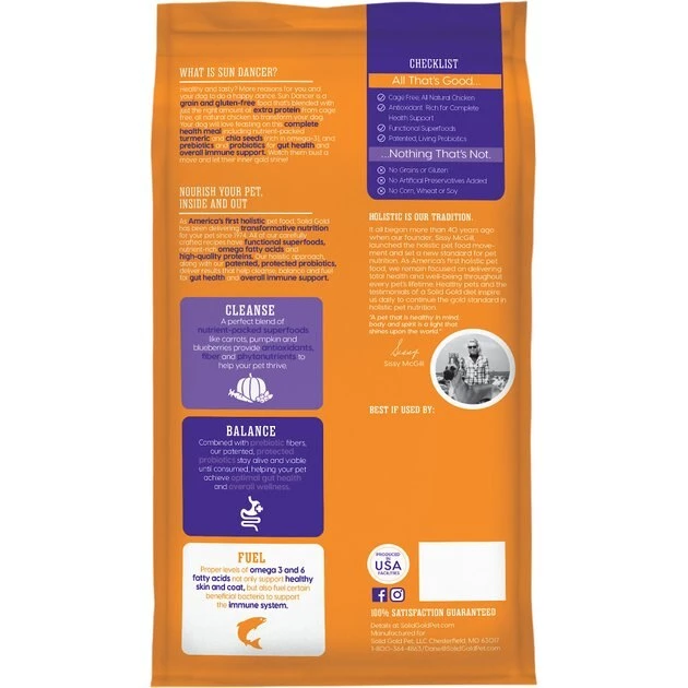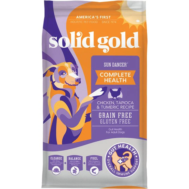Give your furry friend the best of both worlds with Solid Gold Sun Dancer Chicken & Tapioca Recipe with Quinoa Grain-Free Dry Dog Food. It features real chicken as the first ingredient with nutrient-packed turmeric and chia seeds for a meal that is both healthy and tasty. This food contains a unique blend of superfoods, living probiotics and the optimal balance of omega 3 and 6 fatty acids for a healthy coat, gut health and overall immune support. It is also free of grains and fillers because your paw-tner deserves nothing but the best. Consider this grain-free food from Solid Gold as a nutritious and delicious option for your companion.