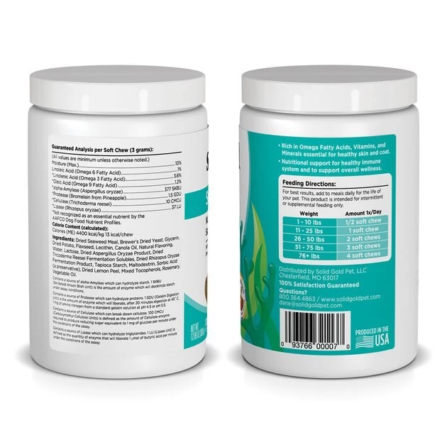 - Supports skin and coat health in dogs with USA-sourced seaweed that’s high in chlorophyll, iodine, and essential nutrients.