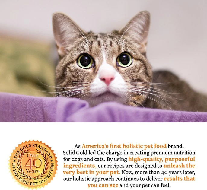 - Holistic grain- and gluten-free recipe that’s specially designed for cats of all life stages, including kittens and seniors.